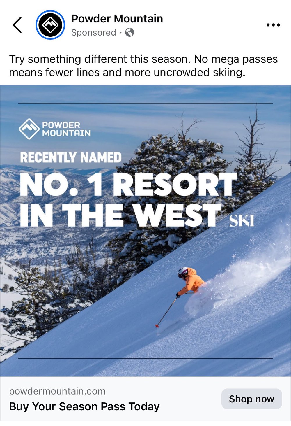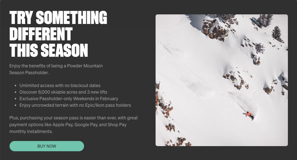 So how does Powder Mountain get ahead of these controversial changes? Well, the resort seems to think they can do that with compelling marketing efforts. However, Powder Mountain’s leadership seems to either think that its consumer base is quite dumb or just be running out of ideas, as their latest ads have arguably been just as deceptive as the timing of some of their policy announcements.