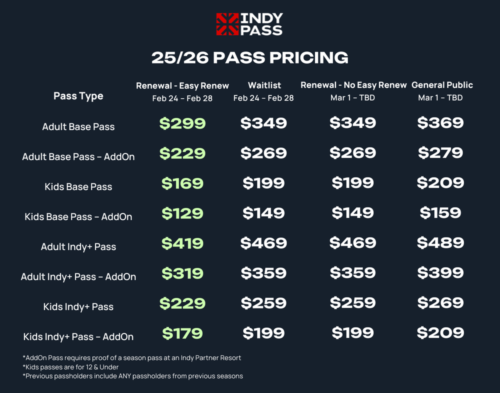 The Indy Pass just dropped some major updates for the 2025-26 season, including a streamlined renewal process, a promise of even more resorts, and details on pricing.