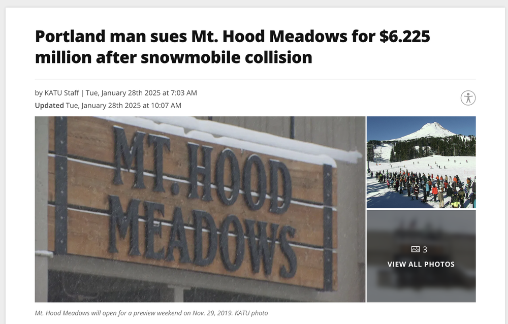 So realistically-speaking, what could actually happen that would cause MountainGuard to leave—and consequently trigger a statewide resort shutdown? Well, the company did cite that a single major verdict could cause it to leave the state, and a few major cases making their way through the legal system could very well be the “nuclear verdict” that would force the company’s hand. Take, for example, the most high-profile active case: a $6.2 million lawsuit filed in early 2025 by a ski coach who was struck by a snowmobile at Mount Hood Meadows. While the case is likely months away from settlement or trial, it is significant—and could result in a large payout. In addition, the wrongful-death lawsuit against Mount Bachelor, which seeks nearly $50 million in damages, is still winding through the legal process after being filed in August 2022. There could be other non-public cases or other factors that could cause MountainGuard to leave in the coming months too; for example, the Mount Hood Skibowl case that forced the mountain to shut down its bike park wasn’t even reported on until the eight-figure verdict came down.