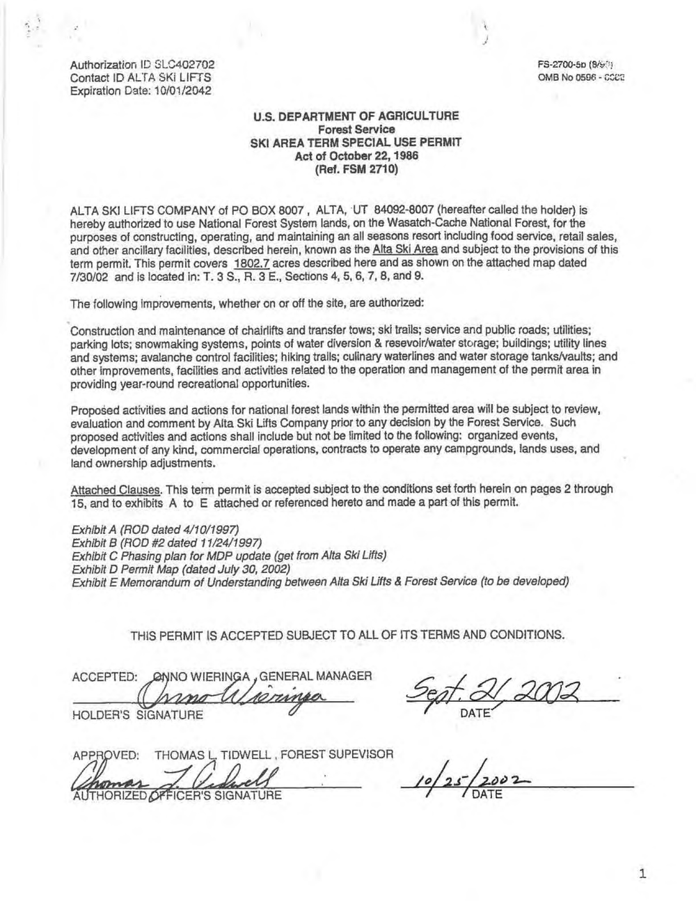 The Special Use Permit (SUP) granted to Alta by the US Forest Service