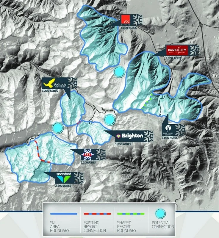 By 1998, in preparation for the 2002 Olympic Games, Park City and Deer Valley both debuted substantial lift-served terrain expansions that put parts of their boundaries directly next to one another—and although the resorts never opened an official link, one could now theoretically just duck the rope to go from Park City to Deer Valley, or vice-versa. As a result, the Utah ski world ended up in a place where six of its resorts were bordered by nothing more than a rope line. So if that could happen, why not link them all?