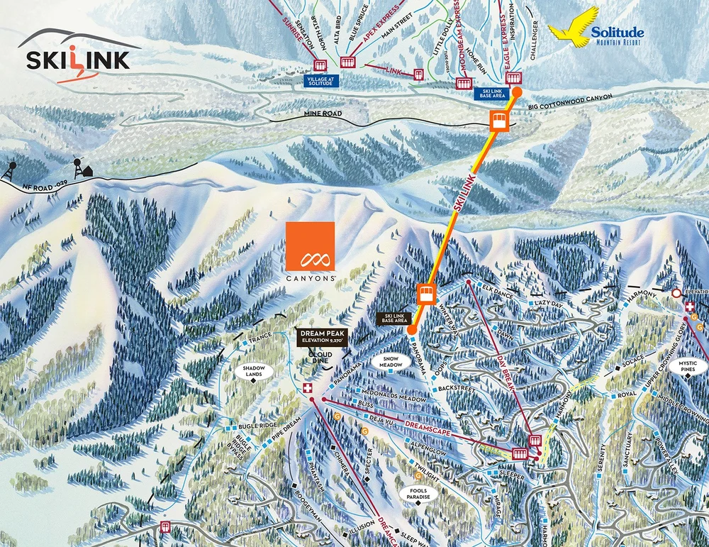 The SkiLink plan proposed a gondola connecting the upper part of Canyons with the base of Solitude.
